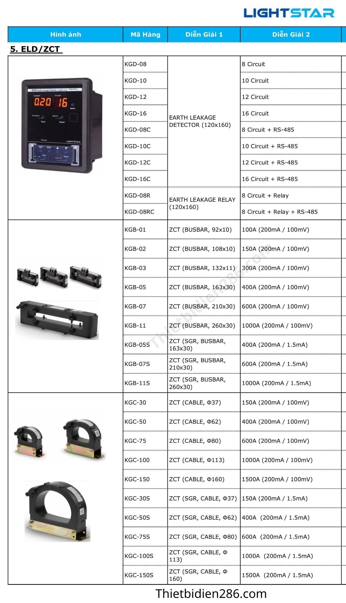 - Bảng giá thiết bị điện