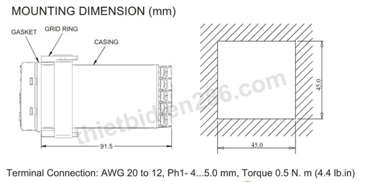 | Tiêu chuẩn bảo vệ | IP 20 (Đầu nối & vỏ) IP 40 (Cho mặt trước) |