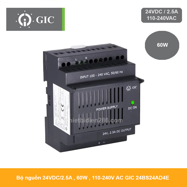 Bộ nguồn GIC 24BS24AD4E là bộ nguồn chuyển mạch (SMPS) công nghiệp hiệu suất cao, sử dụng đầu vào 110–240VAC và cung cấp đầu ra 24V DC – 2.5 A ( 60W) ổn định. Sản phẩm được thiết kế cho các hệ thống điều khiển, PLC, cảm biến và thiết bị tự động hóa cần nguồn DC lớn và hoạt động liên tục và đã được mở bán tại Thiết bị điện 286 hãy đến với chúng tôi để nhận được nhiều ưu đãi tốt nhất :
