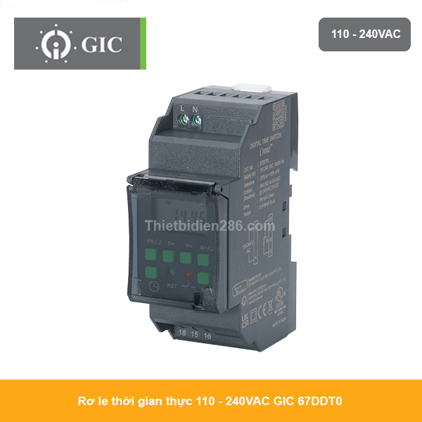 67DDT0 GIC : Timer thời gian thực kỹ thuật số 24 giờ 110 – 240 VAC,25 chương trình On/off ,1 C/O