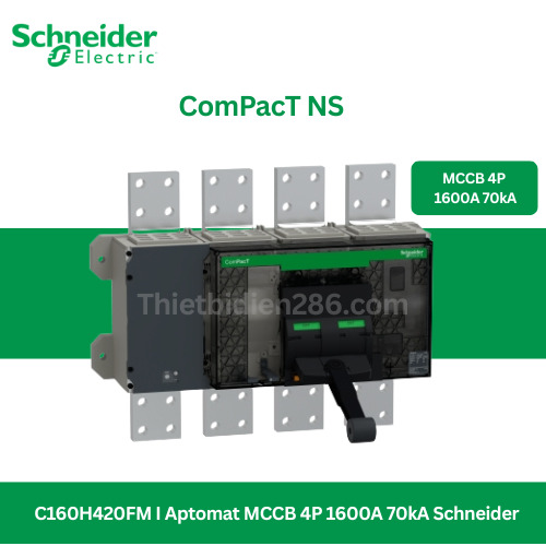 C160H420FM Schneider là model thuộc dòng MCCB ComPacT NS – giải pháp aptomat khối cao cấp do Schneider Electric phát triển, chuyên dùng cho mạch điện tổng hoặc phân phối công suất lớn.