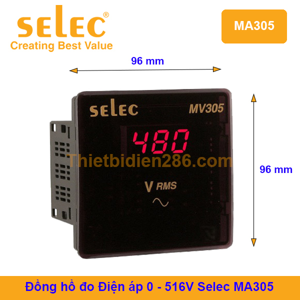 | MV305 (96×96) | Đồng hồ đo điện áp Selec MA305 |