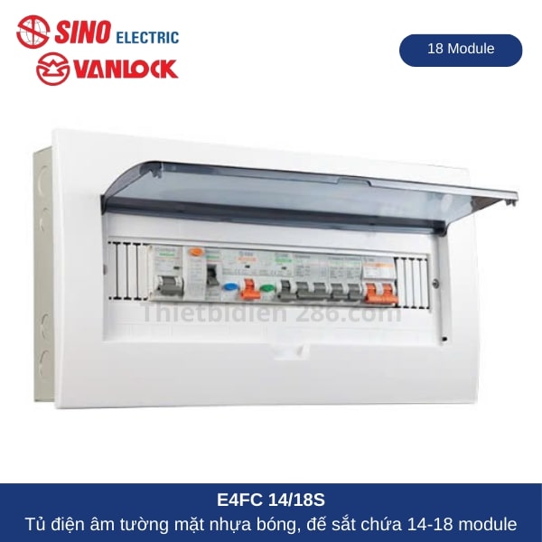Tủ điện âm tường 14-18 mô-đun mặt nhựa bóng, đế sắt E4FC 14/18S Sino là một loại tủ phân phối điện trung thế, đóng vai trò là vỏ bảo vệ và nơi lắp đặt các thiết bị đóng cắt như MCB, MCCB, RCCB, và các thiết bị đóng cắt khác trong hệ thống điện.
