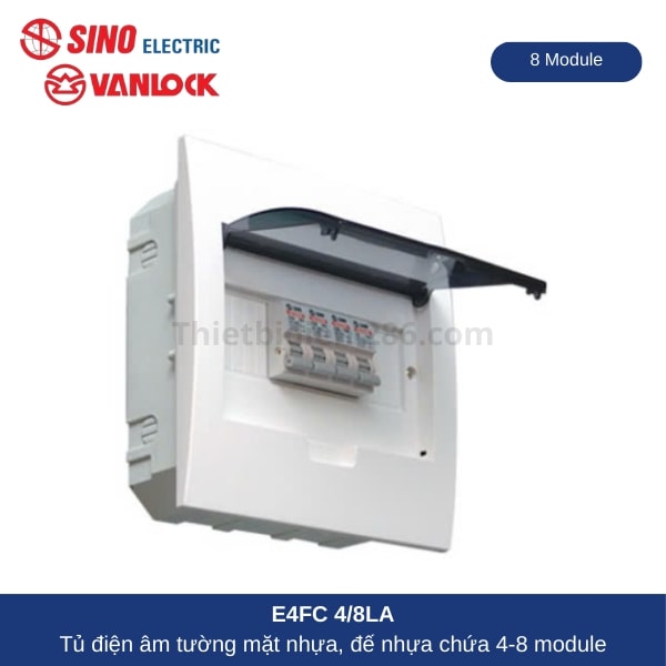 E4FC 4/8LA Sino | Tủ điện âm tường 4-8 mô-đun mặt nhựa, đế nhựa