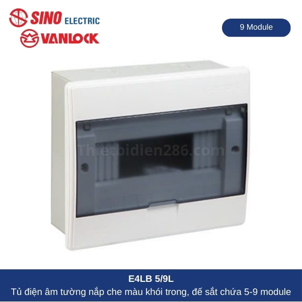Tủ điện âm tường 5-9 mô-đun màu khói trong, đế sắt E4LB 5/9L Sino là một loại tủ phân phối điện trung thế, đóng vai trò là vỏ bảo vệ và nơi lắp đặt các thiết bị đóng cắt như MCB, MCCB, RCCB, và các thiết bị đóng cắt khác trong hệ thống điện.