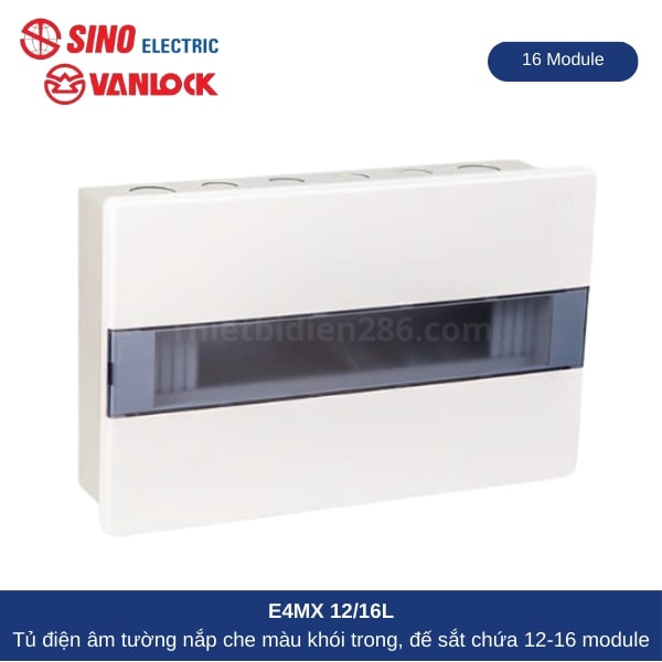 | E4MX 12/16L | 12-16 | Tủ điện âm tường màu khói trong, đế sắt 340x210x76 |