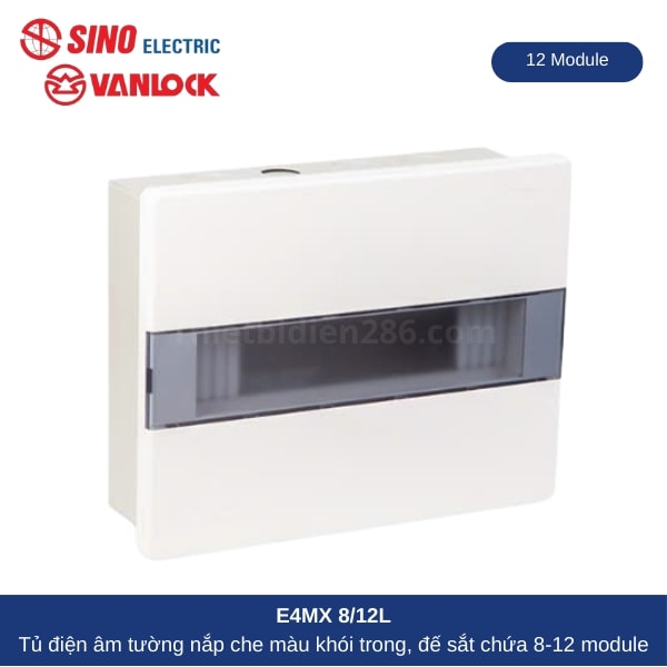 Tủ điện âm tường 8-12 mô-đun màu khói trong, đế sắt E4MX 8/12L Sino là một loại tủ phân phối điện trung thế, đóng vai trò là vỏ bảo vệ và nơi lắp đặt các thiết bị đóng cắt như MCB, MCCB, RCCB, và các thiết bị đóng cắt khác trong hệ thống điện.