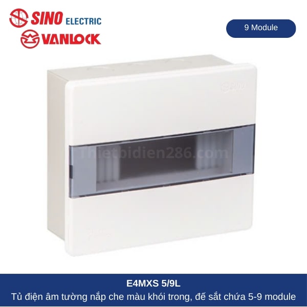 Tủ điện âm tường 5-9 mô-đun màu khói trong, đế sắt E4MXS 5/9L Sino là một loại tủ phân phối điện trung thế, đóng vai trò là vỏ bảo vệ và nơi lắp đặt các thiết bị đóng cắt như MCB, MCCB, RCCB, và các thiết bị đóng cắt khác trong hệ thống điện.