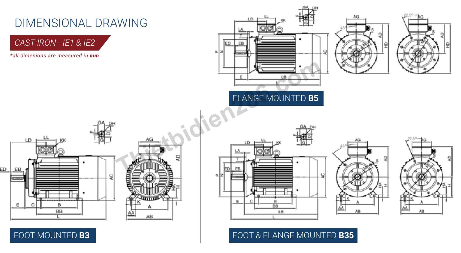 EM132MB-6 Elektrim | Động cơ điện 3 pha 5.5kW-7.5HP