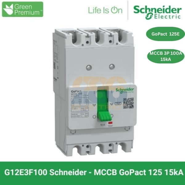 G12E3F100 Schneider là aptomat dạng MCCB 3 pha 100A, thuộc dòng sản phẩm nổi tiếng Schneider , với khả năng cắt ngắn mạch lên đến 15kA. Đây là giải pháp hoàn hảo cho các hệ thống điện công nghiệp, dân dụng có yêu cầu cao về độ bền, an toàn và hiệu suất.Trong bài viết này, cùng Thiết bị điện 286 tìm hiểu về dòng Gopact 125 Schneider G12E3F100 này nhé!