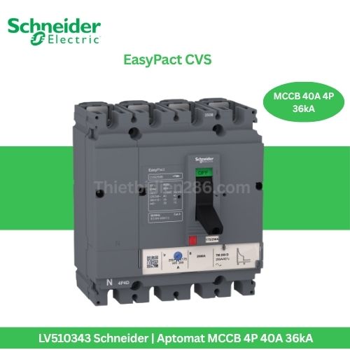LV510343 Schneider, là aptomat khối thuộc dòng sản phẩm EasyPact CVS (16–630A), được Schneider Electric thiết kế nhằm đáp ứng nhu cầu bảo vệ cho hệ thống điện dân dụng vừa và nhỏ hoặc trong các ứng dụng công nghiệp nhẹ.