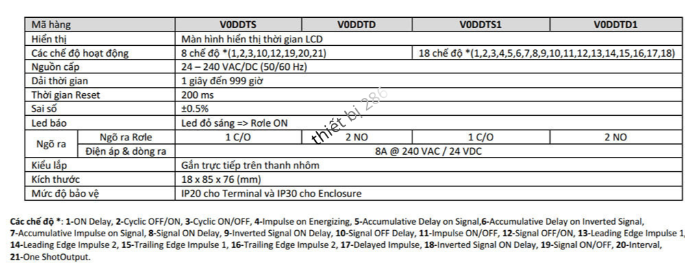 | V0DDTS1 | Timer đa năng | 24-240V AC/DC | 18 chức năng | 1 C/O | Timer |