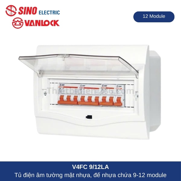 Tủ điện âm tường Vanlock 9-12 mô-đun mặt nhựa, đế nhựa V4FC9/12LA Sino là một loại tủ phân phối điện trung thế, đóng vai trò là vỏ bảo vệ và nơi lắp đặt các thiết bị đóng cắt như MCB, MCCB, RCCB, và các thiết bị đóng cắt khác trong hệ thống điện.