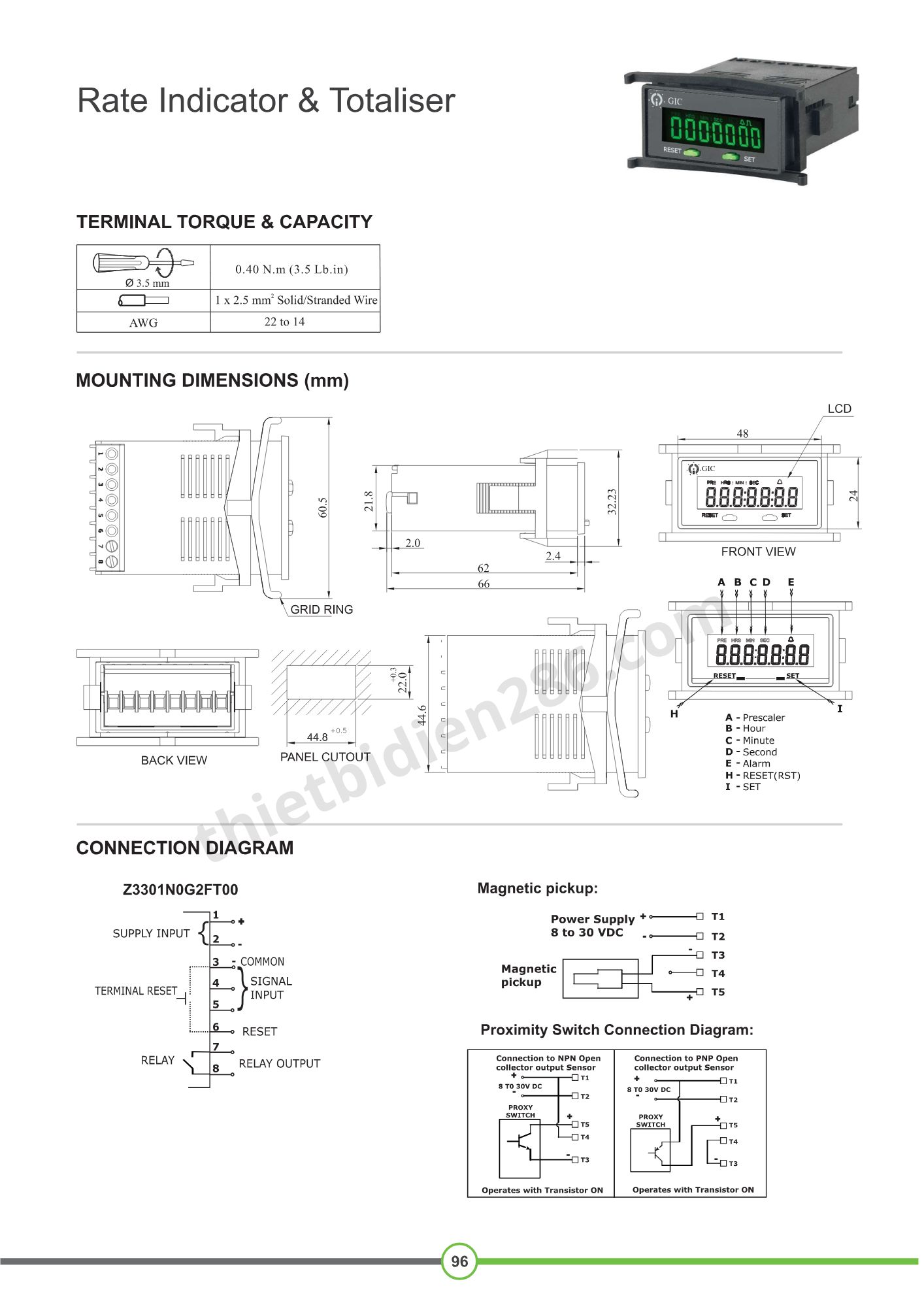 Thông số kỹ thuật Bộ đếm thời gian Z3301N0G2FT00 GIC 9-30 VDC